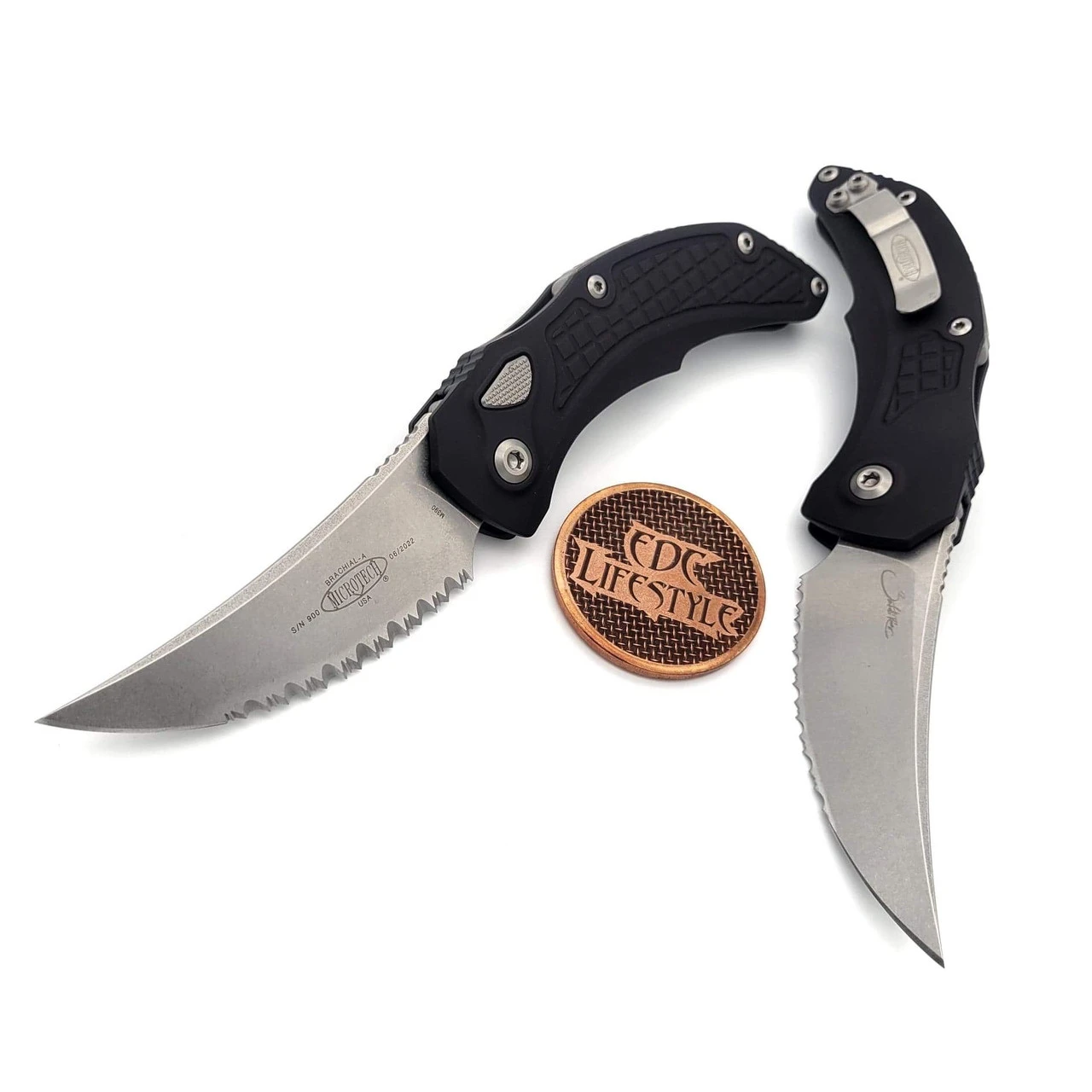 Persian Style automatic folding knife. Very ergonomic with a kick to its spring. Frag-pattern machine finish for additional grip and comes with a slot for a lanyard.