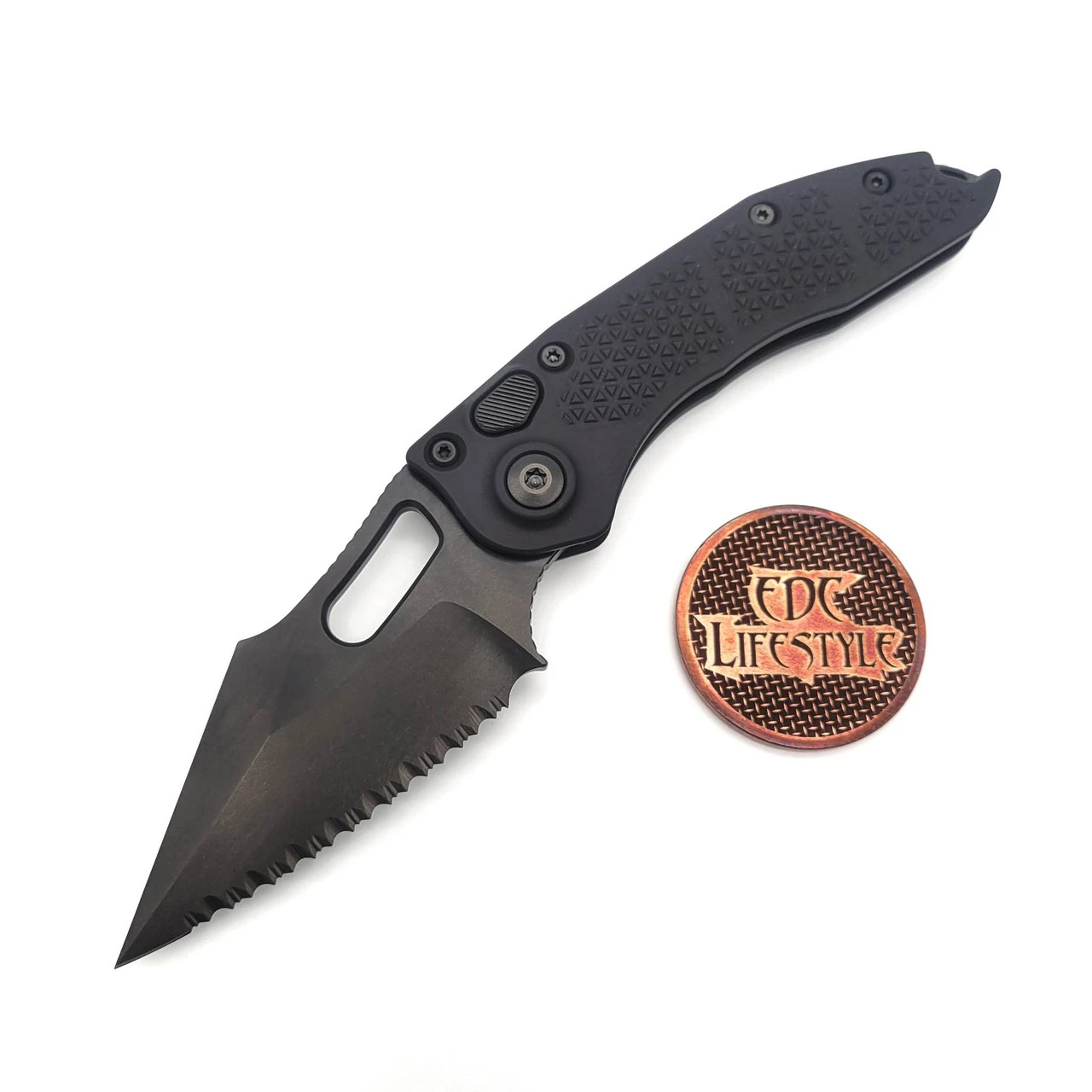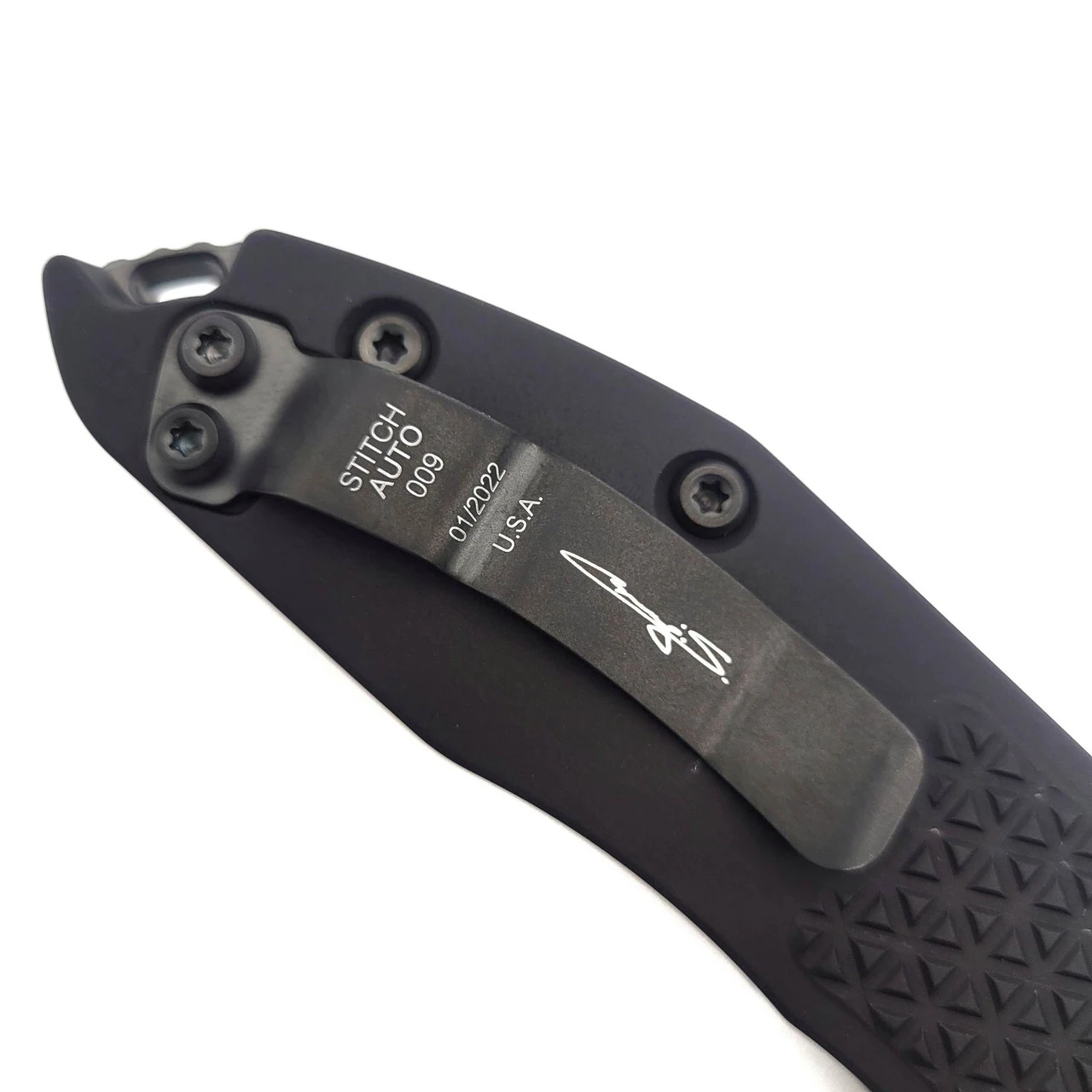 This Auto Stitch is the production version of the famous Borka Stitch by Sebastijan Berenji. Knurled handle, beefy spring and tough aluminum alloy. Tip-up, right hand carry.