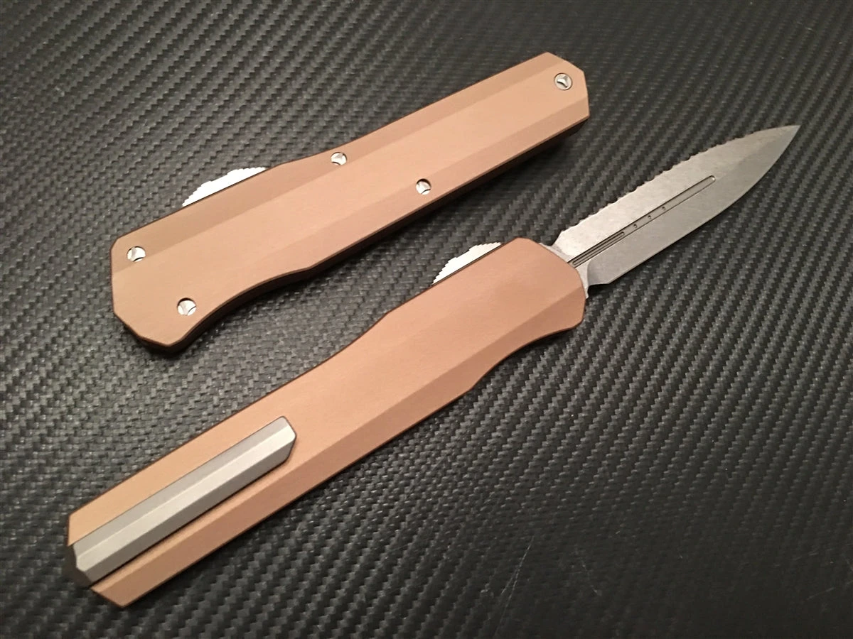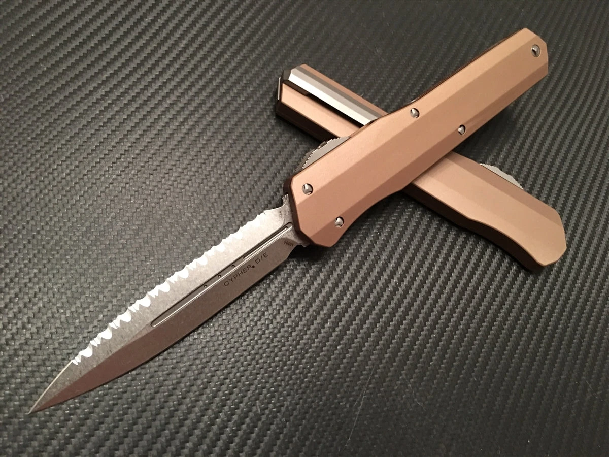 Microtech Cypher Double Edge Stonewashed Full Serrated Tan 242s-12TA