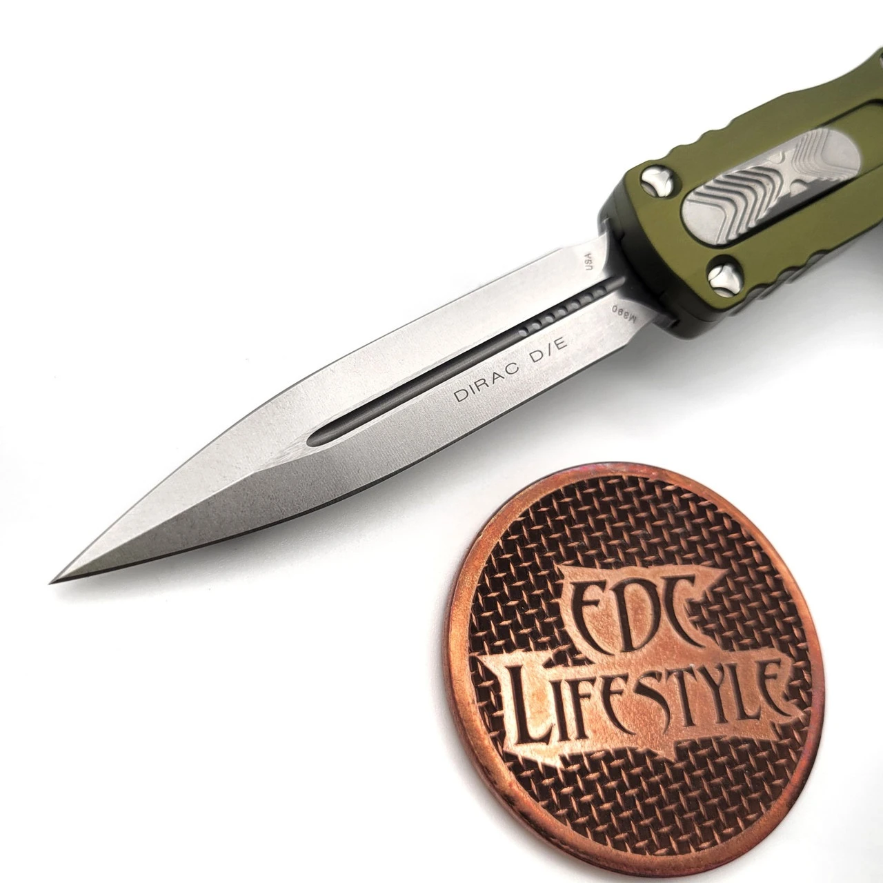 The all-new Dirac™ is our first double-action knife with a cover firing slider. We designed a new ergonomic chassis with curved lines similar to the H.A.L.O.® for a slightly different feel compared to our other handles. We researched this particular O.T.F. design and applied our signature ultra-high tolerance Microtech® features such as proprietary hardware, innovative internal mechanism, and glass breaker. With an overall length of 7.25 inches, the all-new Dirac™ is just right for an everyday knife.