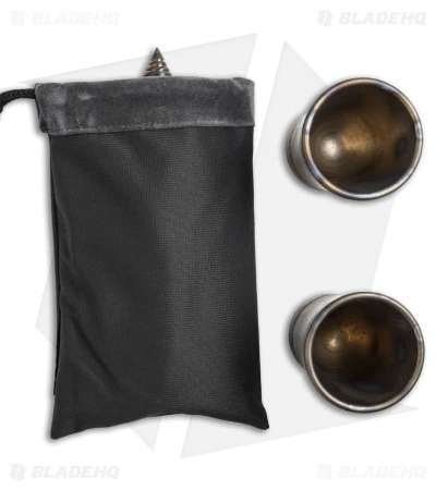 Whether you’re on the trail or on the golf course, enjoy the moment with this deluxe flame-anodized titanium flask and shot glass set! It comes in a convenient, zippered nylon travel case. The titanium flask features the Marfione Dagger and a custom turned spike cap with three tritium inserts! The two shot glasses are both machined from a billet of titanium. Treat yourself and your friends.