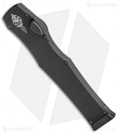This Microtech Halo VI has a Hellhound Tanto blade with a two-tone black DLC finish. Its handle is made from Mil-Spec anodized alloy with black DLC hardware. The charging handle comes marked with the Marfione Signature and date of creation.