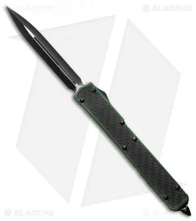 The Microtech Makora II knife fires in and out automatically via the sliding firing button the the knife’s right side. The handle is OD green anodized 6061-T6 aluminum with a carbon fiber insert front and back. The double edge blade is black coated steel with plain cutting edges. The Makora II has a tactical black pocket clip, hardware, and glass breaker tip. The action on this run feels exceptional and we think the Makora series represents the Microtech line well. The screws on these are custom and cannot be opened with either torx or standard Tri-wing wrench sets. You must use the tool sold HERE.