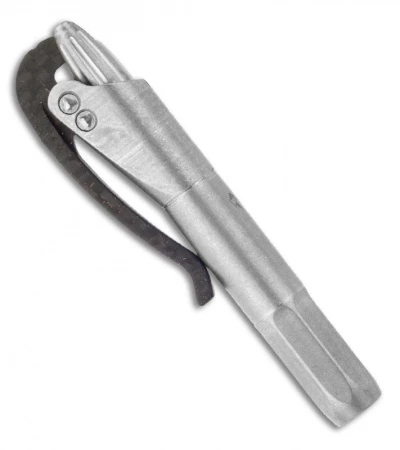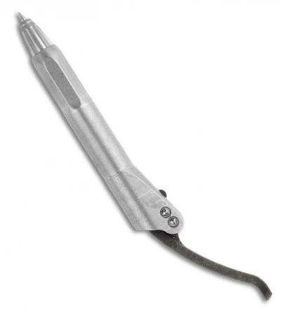 The Siphon is a unique folding or lever-action pen and a stylish writing instrument from Microtech. The pocket clip unfolds and the pen tip is revealed. Made of stainless steel and fitted with a black Pilot ink gel cartridge (replaceable).