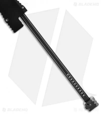This Nemesis IV knife has a black anodized aluminum handle that features a milled contoured surface. Microtech has also customized the hardware with the triangle screws. The dagger blade is black two-tone finished S35-VN steel with plain edges.