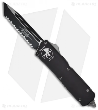 The Microtech Scarab is perhaps the mother of all out-the-front automatic knives. The Scarab is double action meaning it fires both out and in via the slide button located on the right side of the knife. Action, lock-up and quality are all top-notch Microtech.