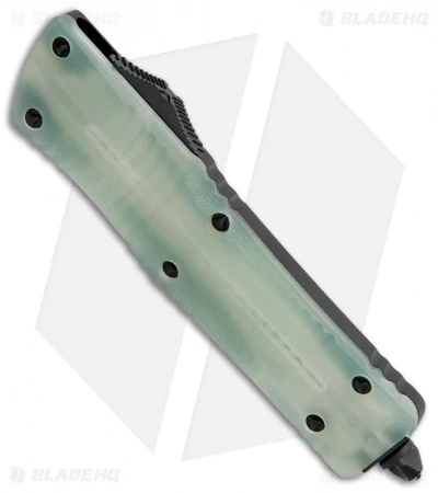 Microtech’s largest OTF production knife is named after the Troodon dinosaur. The Combat Troodon is the really large version of the popular Troodon. Despite the size, the handle feels slim and comfortable. The double-edged dagger style blade is both attractive and functional and the action is Microtech excellent.