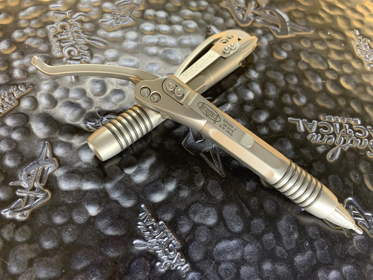 The Siphon II from Microtech Knives is a stainless steel lever-action pen. It features an elongated body that is capable of accepting a replaceable pressurized Fisher Space cartridge. The Siphon II’s unique design and pocket clip make it an ideal addition to your everyday carry repertoire.