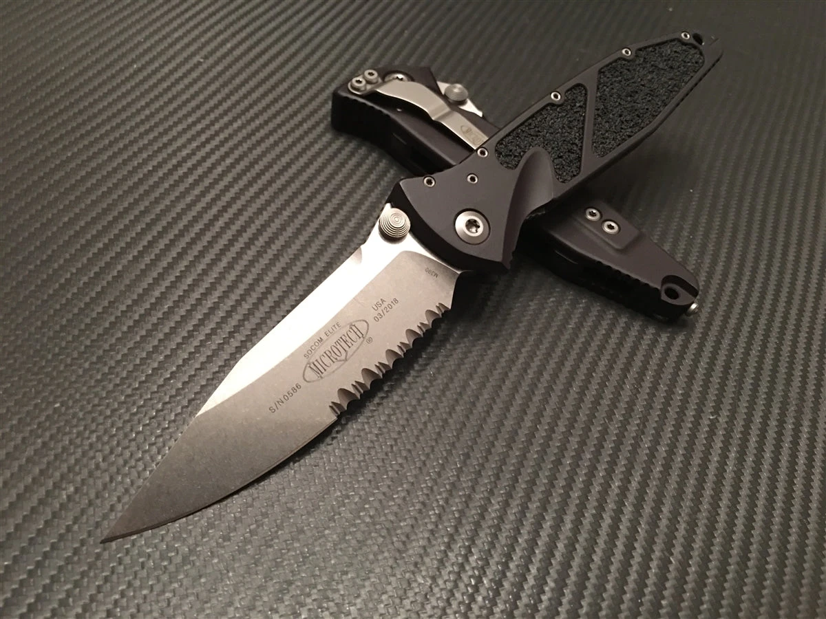 Microtech Socom Elite Single Edge Stonewashed Part Serrated 160-11