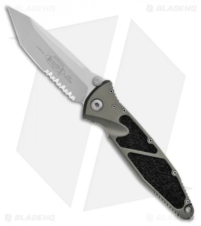- Stonewashed serrated tanto blade.