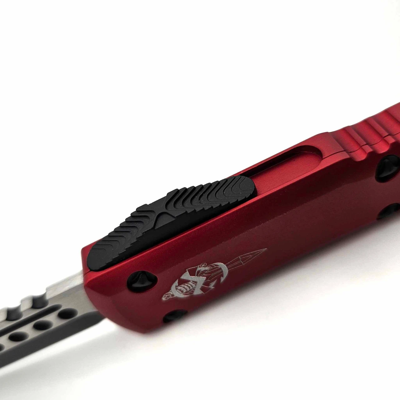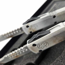 As the flagship model of the Microtech® O.T.F. lineup, the Ultratech® sets the standard for Out-The-Front technology. Proprietary design allows the firing spring to be at rest in both the open and closed positions, drastically reducing wear on the internal firing mechanisms. The contoured chassis handle provides a lighter and more ergonomic feel and comes in a smooth, flat finish.