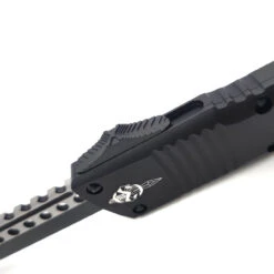 As the flagship model of the Microtech® O.T.F. lineup, the Ultratech® sets the standard for Out-The-Front technology. Proprietary design allows the firing spring to be at rest in both the open and closed positions, drastically reducing wear on the internal firing mechanisms. The contoured chassis handle provides a lighter and more ergonomic feel and comes in a smooth, flat finish.