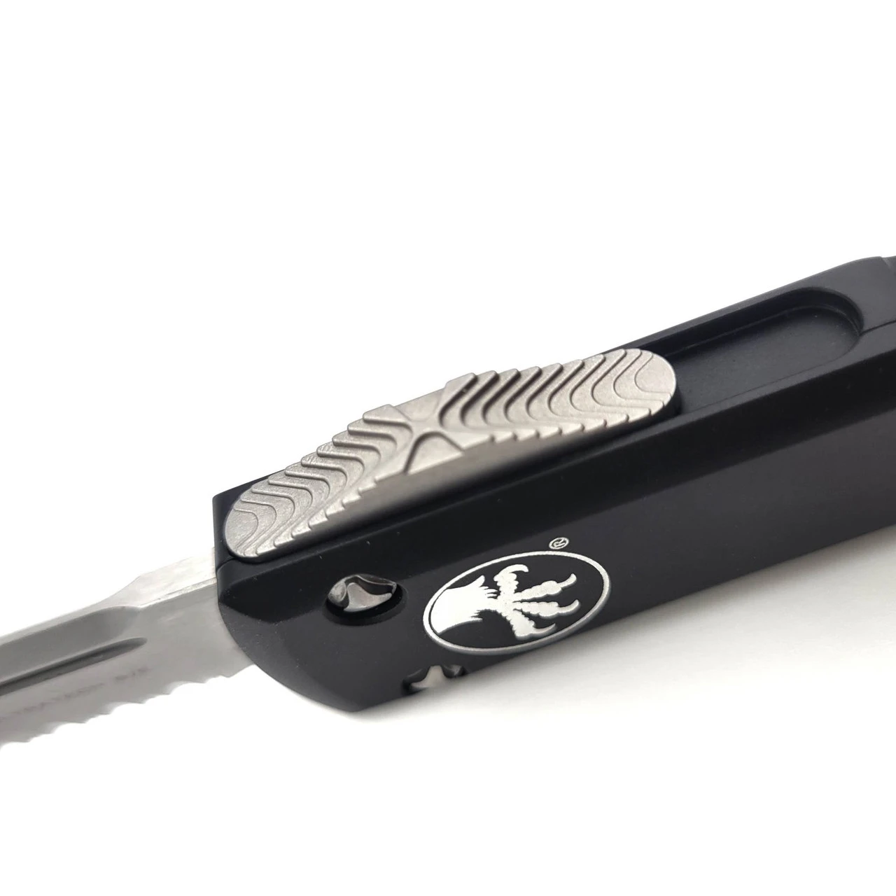 As the flagship model of the Microtech® O.T.F. lineup, the Ultratech® sets the standard for Out-The-Front technology. Proprietary design allows the firing spring to be at rest in both the open and closed positions, drastically reducing wear on the internal firing mechanisms. The contoured chassis handle provides a lighter and more ergonomic feel and comes in a smooth, flat finish.