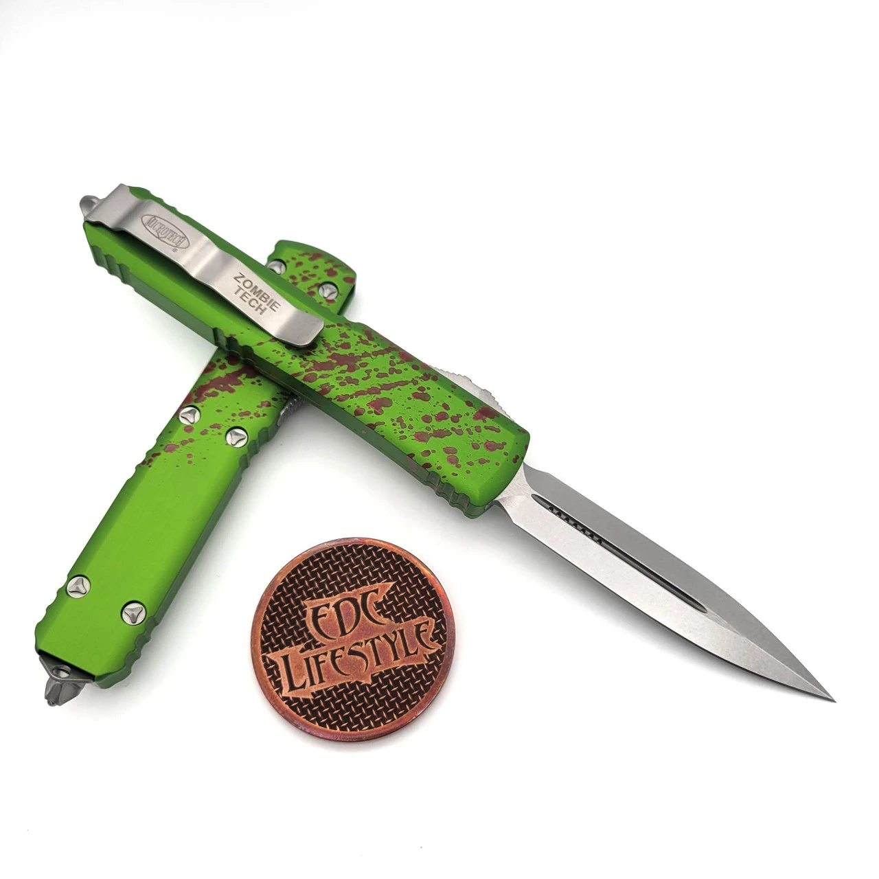 As the flagship model of the Microtech® O.T.F. lineup, the Ultratech® sets the standard for Out-The-Front technology. Proprietary design allows the firing spring to be at rest in both the open and closed positions, drastically reducing wear on the internal firing mechanisms. The contoured chassis handle provides a lighter and more ergonomic feel and comes in a smooth, flat finish.