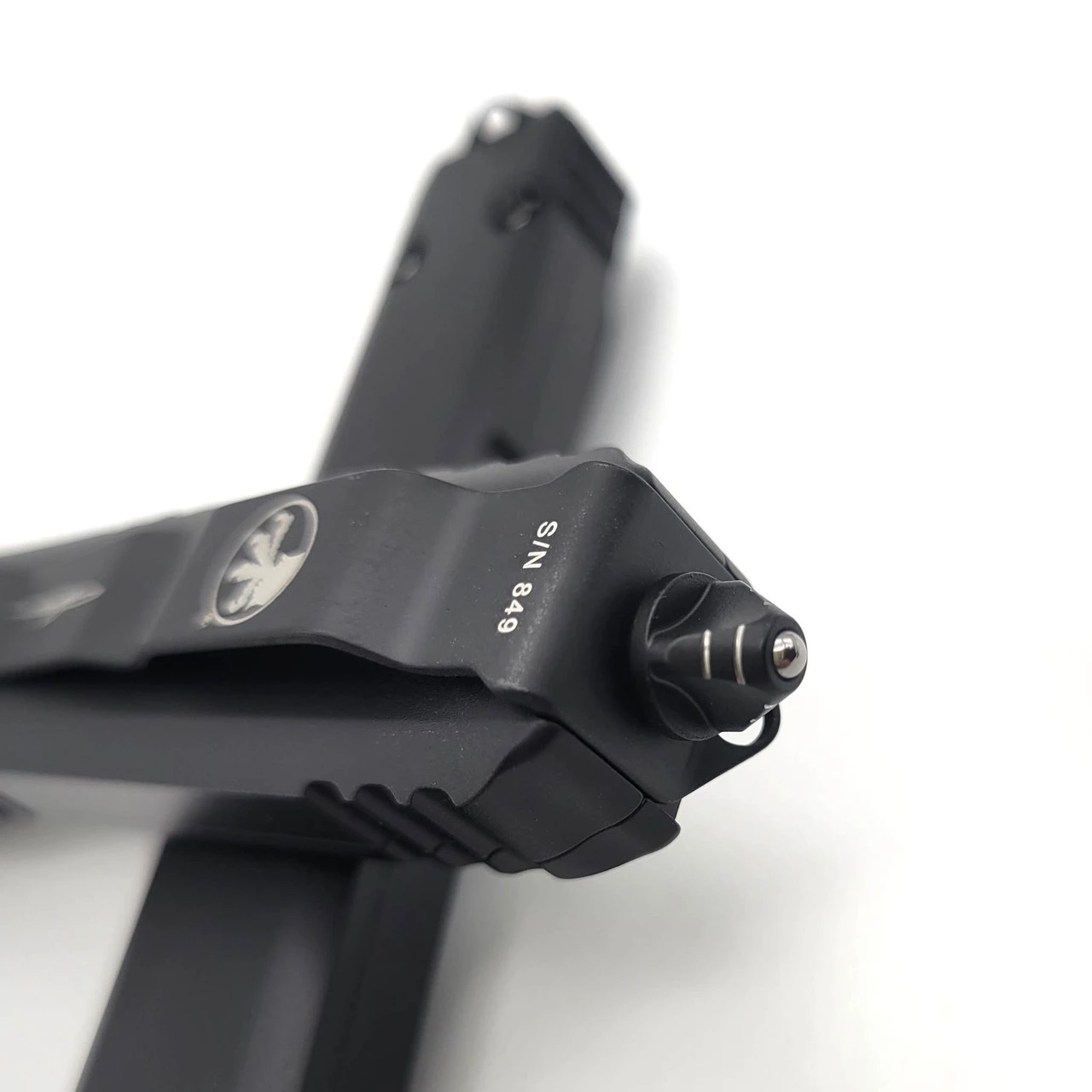 As the flagship model of the Microtech® O.T.F. lineup, the Ultratech® sets the standard for Out-The-Front technology. Proprietary design allows the firing spring to be at rest in both the open and closed positions, drastically reducing wear on the internal firing mechanisms. The contoured chassis handle provides a lighter and more ergonomic feel and comes in a smooth, flat finish.