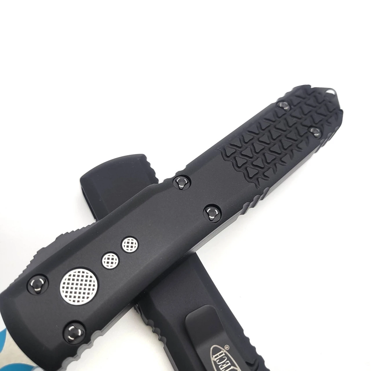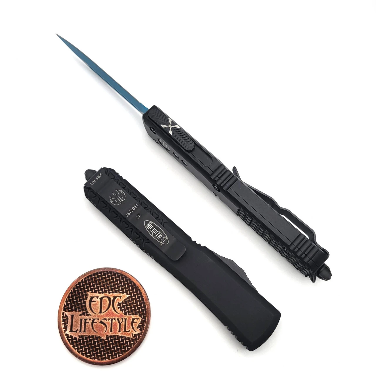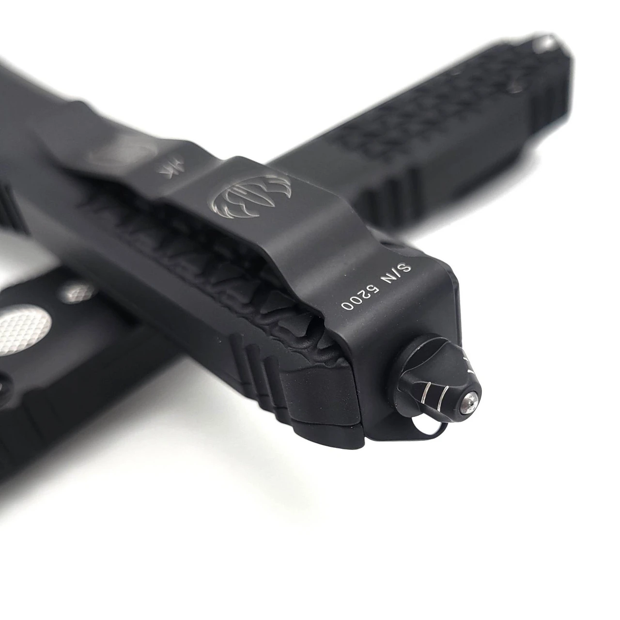 As the flagship model of the Microtech® O.T.F. lineup, the Ultratech® sets the standard for Out-The-Front technology. Proprietary design allows the firing spring to be at rest in both the open and closed positions, drastically reducing wear on the internal firing mechanisms. The contoured chassis handle provides a lighter and more ergonomic feel and comes in a smooth, flat finish.
