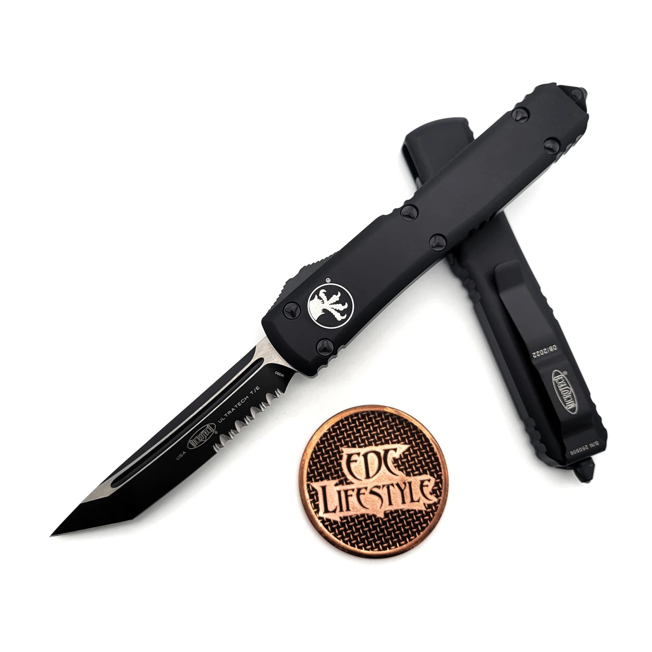 As the flagship model of the Microtech® O.T.F. lineup, the Ultratech® sets the standard for Out-The-Front technology. Proprietary design allows the firing spring to be at rest in both the open and closed positions, drastically reducing wear on the internal firing mechanisms. The contoured chassis handle provides a lighter and more ergonomic feel and comes in a smooth, flat finish.