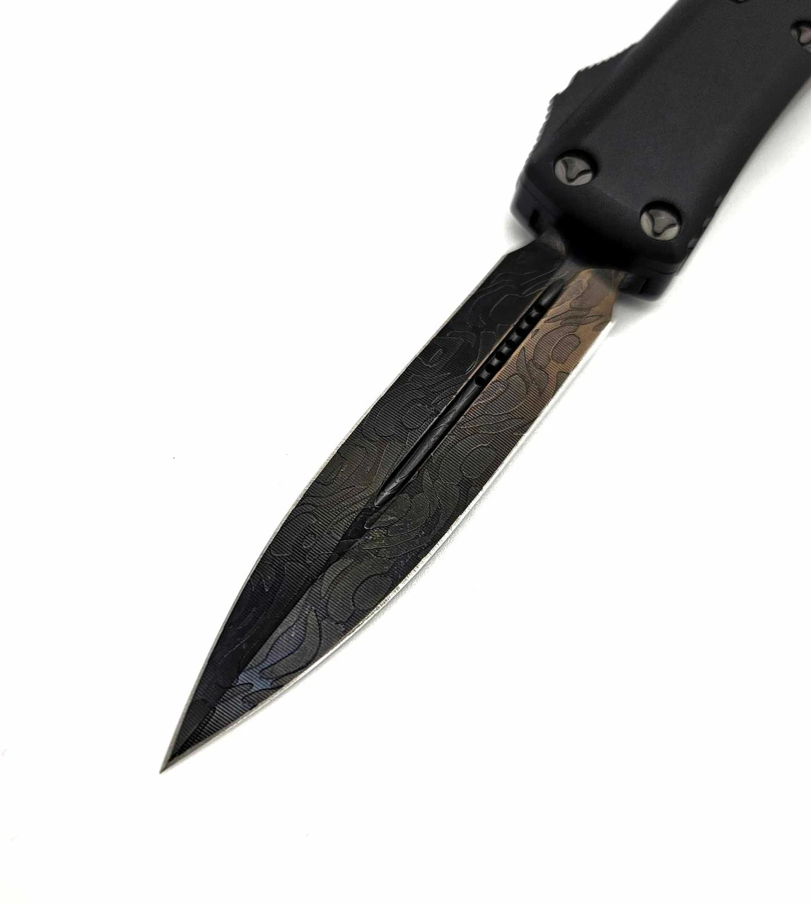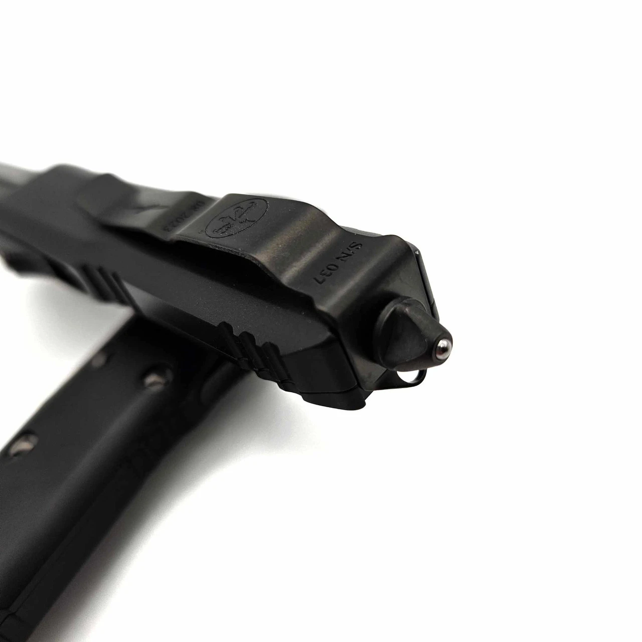 As the flagship model of the Microtech® O.T.F. lineup, the Ultratech® sets the standard for Out-The-Front technology. Proprietary design allows the firing spring to be at rest in both the open and closed positions, drastically reducing wear on the internal firing mechanisms. The contoured chassis handle provides a lighter and more ergonomic feel and comes in a smooth, flat finish.