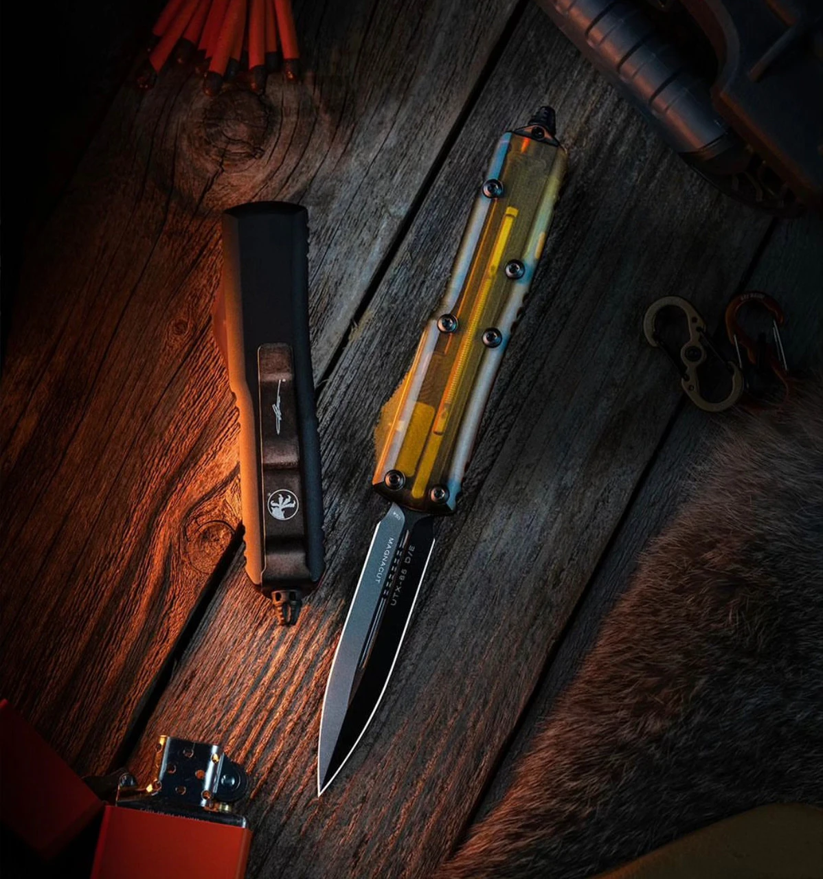 As the flagship model of the Microtech® O.T.F. lineup, the Ultratech® sets the standard for Out-The-Front technology. Proprietary design allows the firing spring to be at rest in both the open and closed positions, drastically reducing wear on the internal firing mechanisms. The contoured chassis handle provides a lighter and more ergonomic feel and comes in a smooth, flat finish.