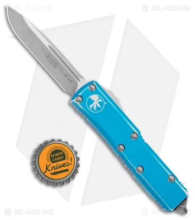 This UTX-85 model has a stonewash finished single edge blade. The 6061-T6 aluminum handle is blue anodized and outfitted with bead blast finished hardware, pocket clip, and glass breaker tip.